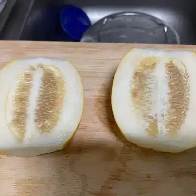 The Korean melon is roughly the same size as an orange. It looks pretty, but I have to admit, it left me a bit disappointed.